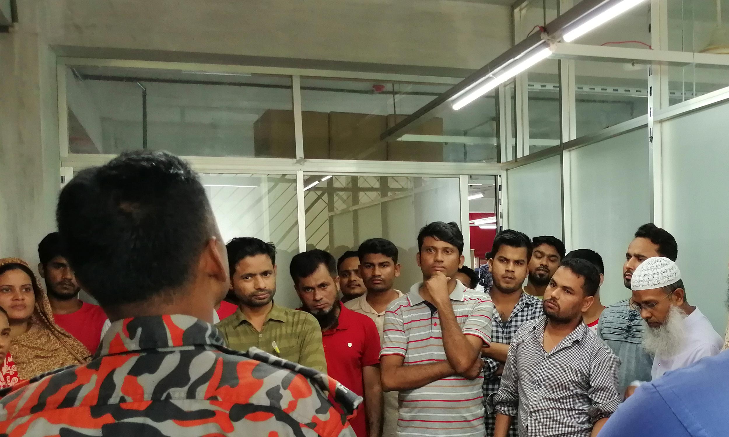 Adequate sensor (Fire Detection System) and alarming system is set up in whole factory area. Regular fire evacuation drill provided to the employee to boost their confidence in handling fire. Moreover in every month there are in a month rehearsals and training program held in fire fighting system. Fire drill is being observed once a month & fire training also being provided at least 25% workers and maintain it strictly.
